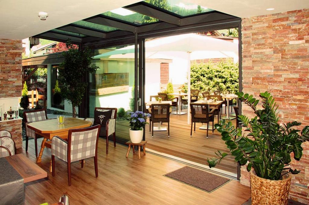 „[…] Im letzten Herbst wurde der verwinkelte Eingangsbereich in eine moderne Lobby mit Kaffeebar und Wintergarten verwandelt. Während der Innenbereich samt Frühstücksraum nach nur 9 Wochen Bauzeit bereits Mitte Dezember für die Wintersaison fertiggestellt wurde, fanden im April und Mai die letzten Arbeiten an der neuen Frühstücksterrasse statt. […]