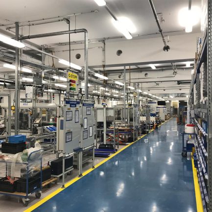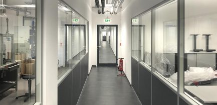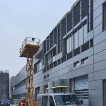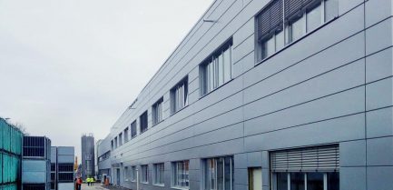 Die Arbeiten an der Dehnstofffertigungshalle befinden sich kurz vor dem Abschluss. In der Halle wurde bereits mit der Produktion begonnen. Die Montage der Metallkassettenfassade ist in der letzten Phase, parallel werden die Außenanlagen vollendet.