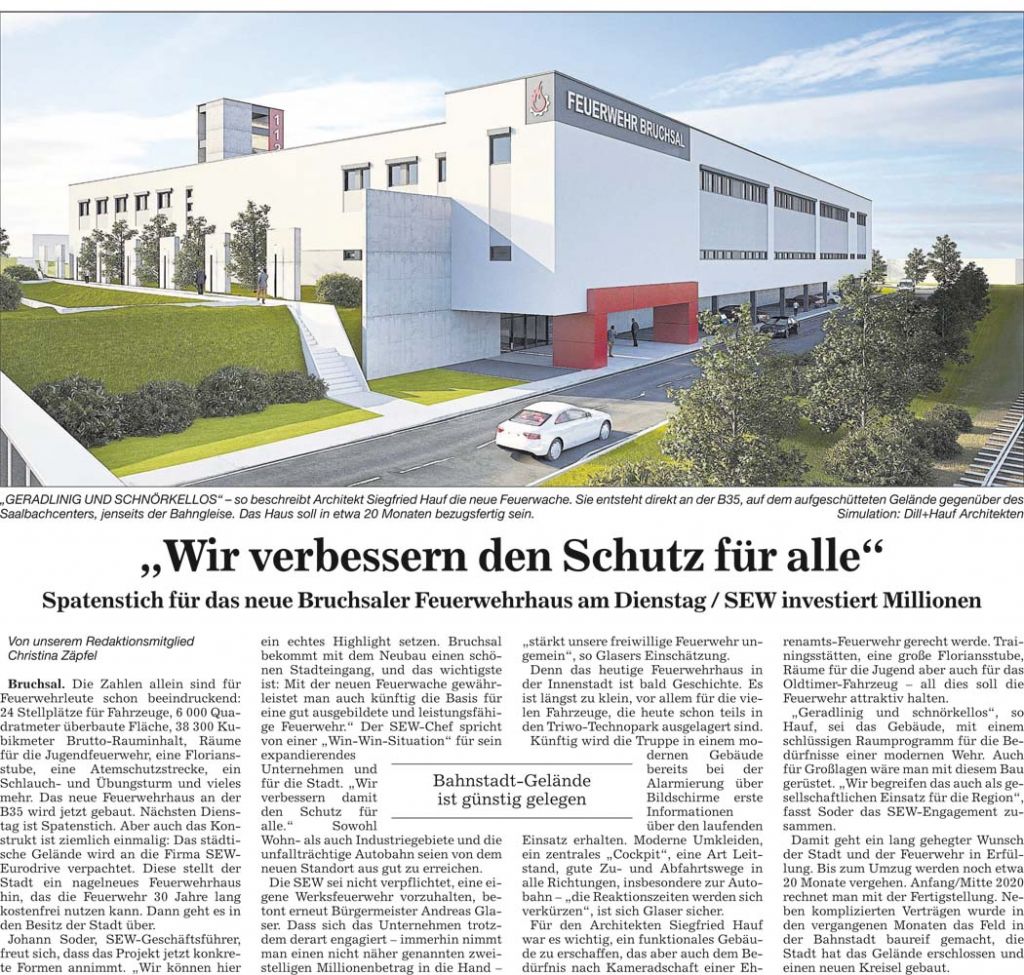 „Wir verbessern den Schutz für alle“ BNN-Artikel über den Neubau der Feuerwache Bruchsal