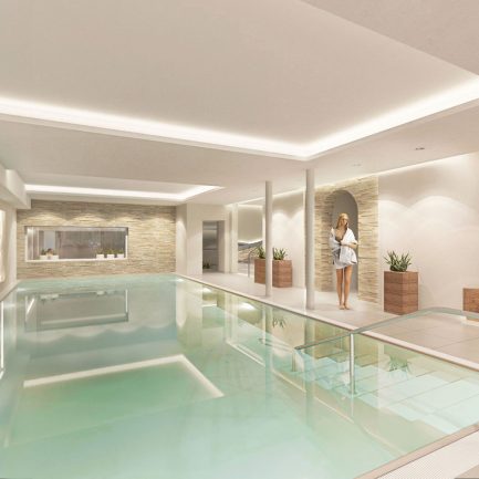 Wir beginnen mit der Neugestaltung des Schwimmbadbereichs und der Erweiterung des Saunabereichs um eine finnische Außensauna mit Terrasse, Dusche und Blick ins Grüne. Die Anordnung des Schwimmbads und des Whirlpools bleiben erhalten, aber die Farben und die Beleuchtung werden sich grundlegend verändern.