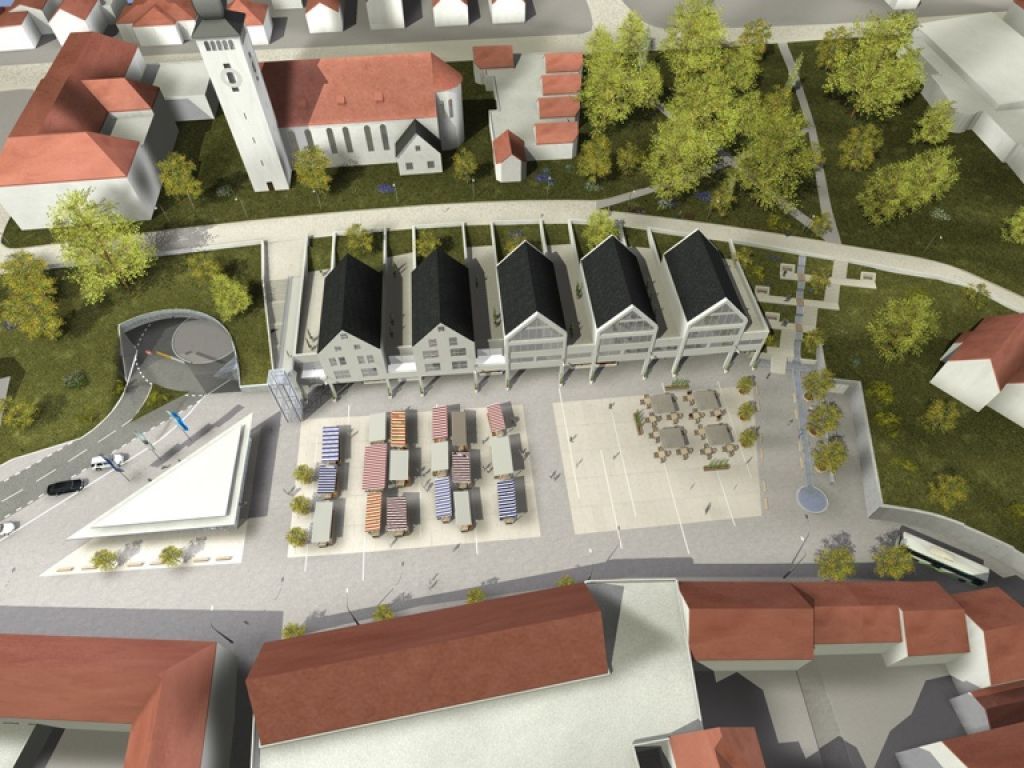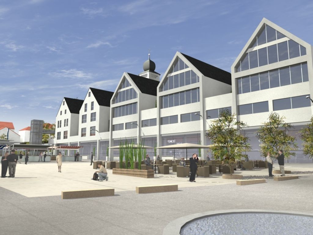 Ein Beispiel für eine derartige Herangehensweise ist das Im Jahr 2009 von Dill+Hauf entwickelte Gesamtkonzept für die Umplanung und Sanierung der Brettener Innenstadt, insbesondere des Sporgassenparkplatzes. Der Entwurf beinhaltete einen randständigen Baukörper mit Geschäfts- und Wohneinheiten, welcher sich optisch an der vorhandenen Bebauung orientierte, sich aber auch eigenständig zum Platz hin präsentierte. Der Entwurf beinhaltete auch eine Tiefgarage, sowie eine untererdige Umgehungsstraße