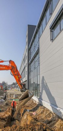 Das Großprojekt der SEW Eurodrive in Bruchsal schreitet planmäßig voran. Neben den bereits fertigen Rohbau- und Stahlbauarbeiten, sind die Dach- und Fassadenarbeiten nahezu abgeschlossen.