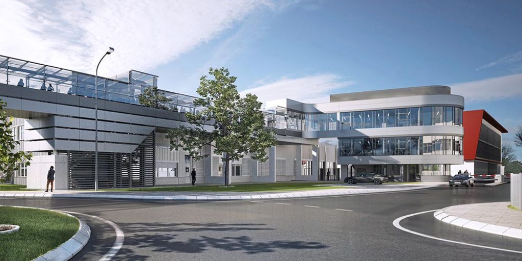 Anfang Juli 2018 ist die neue Hauptpforte der SEW Eurodrive in Bruchsal fertig gestellt und in Betrieb genommen worden. Der Entwurf wurde in enger Kooperation mit dem Architekturbüro Studio Wolfhugel realisiert.