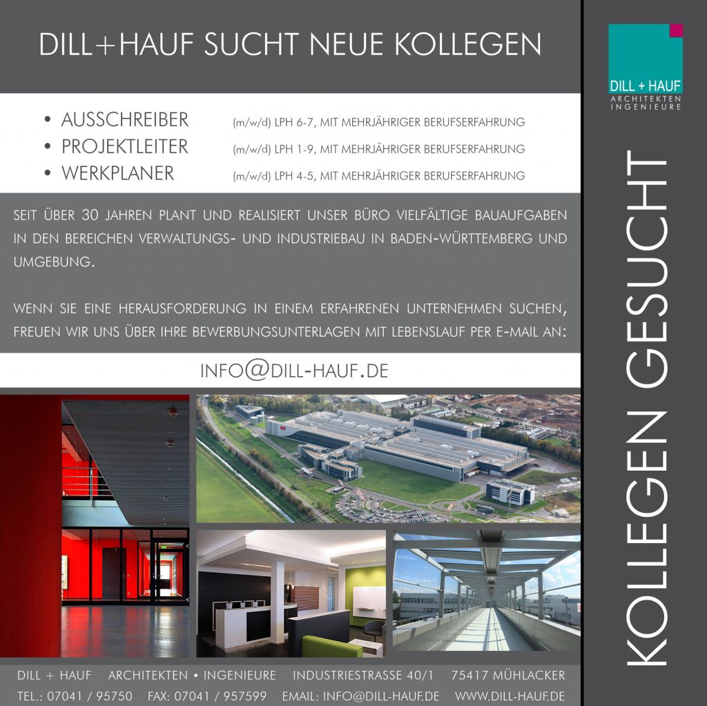 Des Weiteren suchen wir für diverse regionale Projekte Mitarbeiter mit einschlägiger Berufserfahrung von mind. 4 Jahren, vorzugsweise im Industrie- und Verwaltungsbau für folgende Stellen: