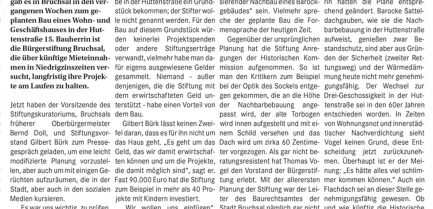 „Viele Diskussionen gab es in Bruchsal in den vergangenen Wochen zum geplanten Bau eines Wohn- und Geschäftshauses in der Huttenstraße 15. Bauherrin ist die Bürgerstiftung Bruchsal, die über zukünftige Mieteinnahmen in Niedrigzinszeiten versucht, langfristig ihre Projekte am Laufen zu halten. […]